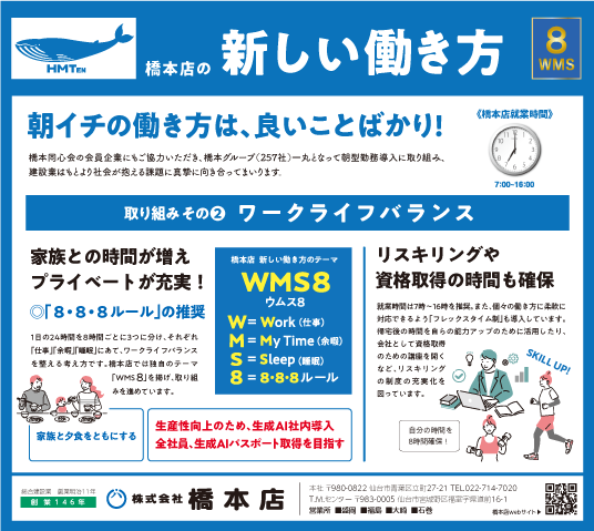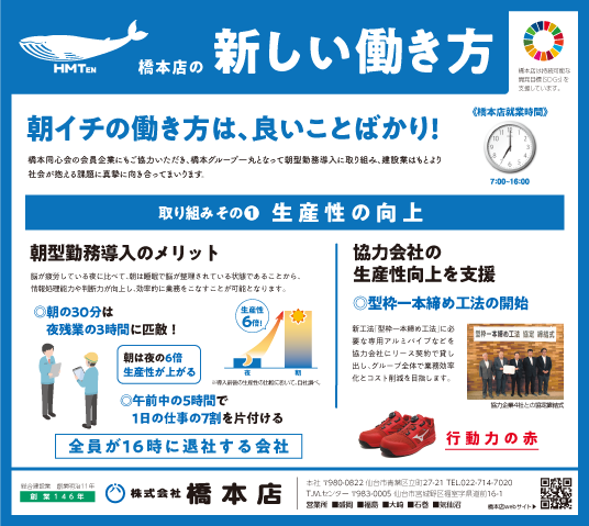 今回受賞した「橋本店の新しい働き方」は2024年10月、12月(以上が受賞対象広告)および2025年2月までのシリーズ広告として、河北新報朝刊に掲載されたものです。